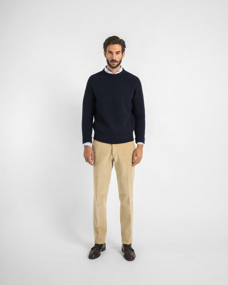 Maglione girocollo costa inglese spalla raglan - Blu Zero