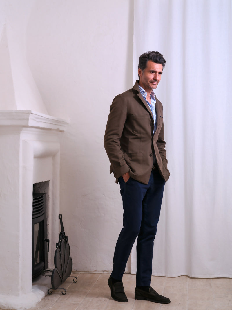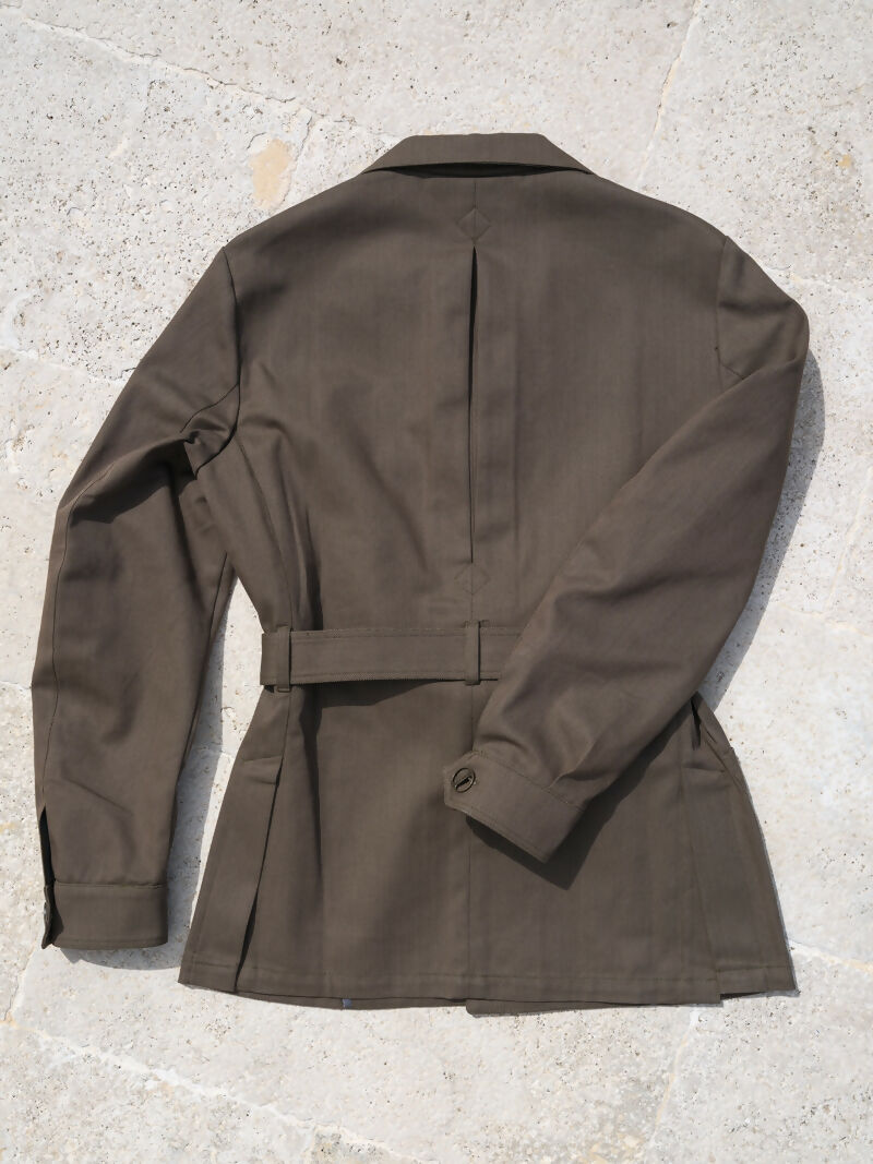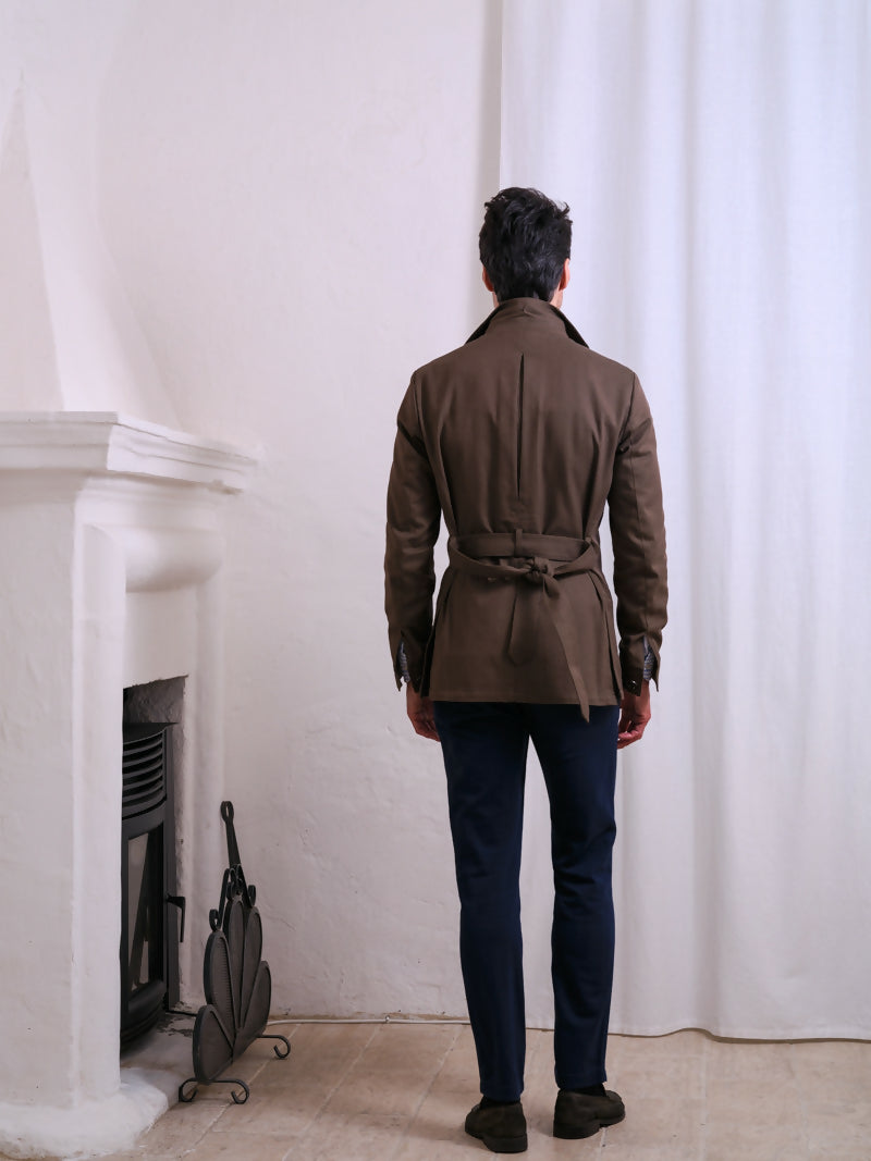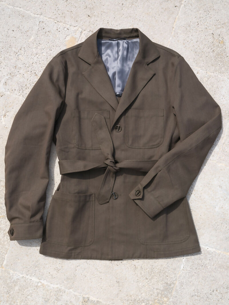 Sappada è un'incantevole località dolomitica, avvolta in sfumature di verde scuro che ritroviamo in questa sahariana. Questo capospalla si ispira alle divise inglesi di epoca coloniale, e mira ad essere un capo fresco e pratico. Realizzata sempre con tessuti molto leggeri (lino o cotone), la sahariana permetteva di sopravvivere al caldo africano, e allo stesso tempo le sue molteplici tasche la rendevano estremamente funzionale.