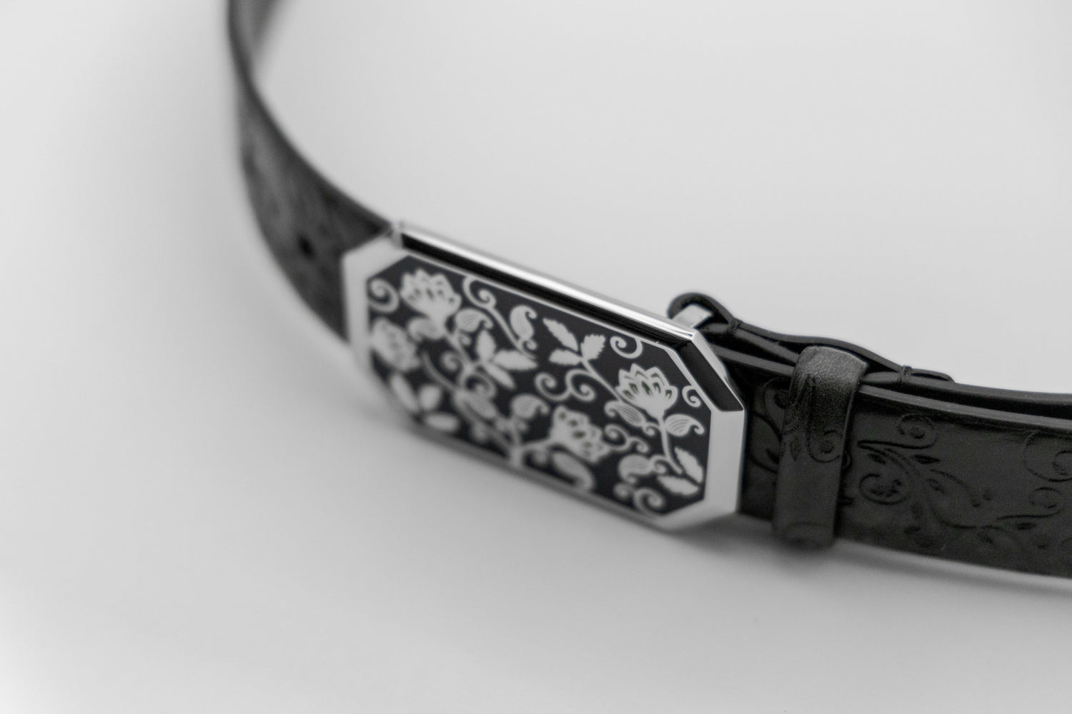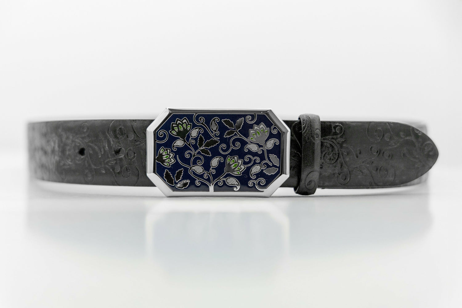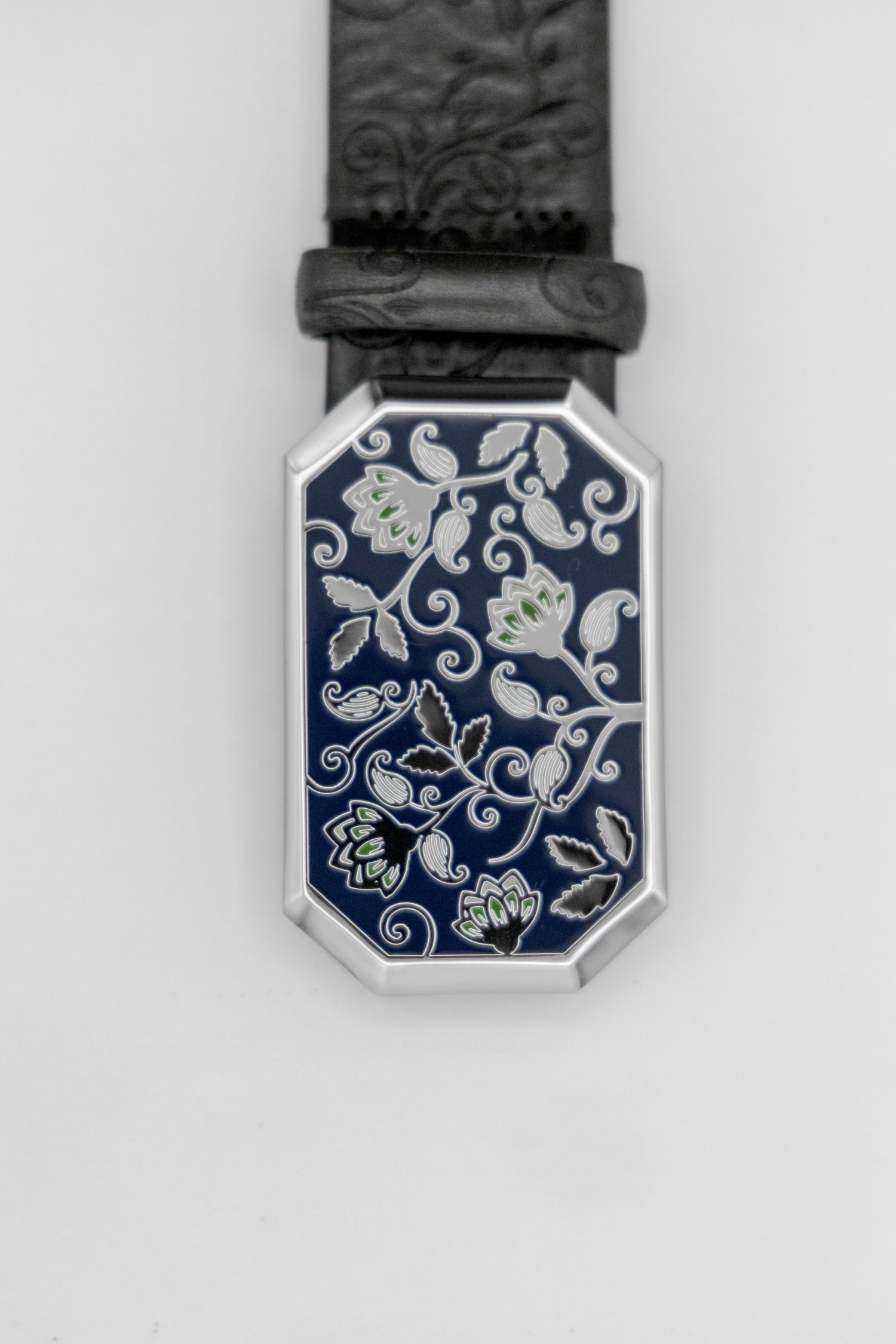 La nostra deposizione galvanica elettrochimica riveste la fibbia con uno strato di palladio per migliorarne le proprietà, come resistenza alla corrosione, durezza e aspetto estetico, ulteriormente impreziosito da una sfumatura ottenuta mediante asportazione artigianale di un sottile strato di oro nero.