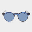 Questi occhiali da sole rotondi con un particolare taglio ciliare vantano un accattivante design total blue. Realizzato a mano in Italia con precisione e cura, questo occhiale è un accessorio audace ed elegante adatto sia per lei che per lui.
