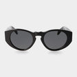Questi occhiali da sole in bioacetato total black sono caratterizzati da lenti grigie di forma ovale, abbinate alla montatura con iconico ponte a chiave. Pensato per chi ricerca un'estetica caratterizzante, sia per uomo che per donna.