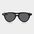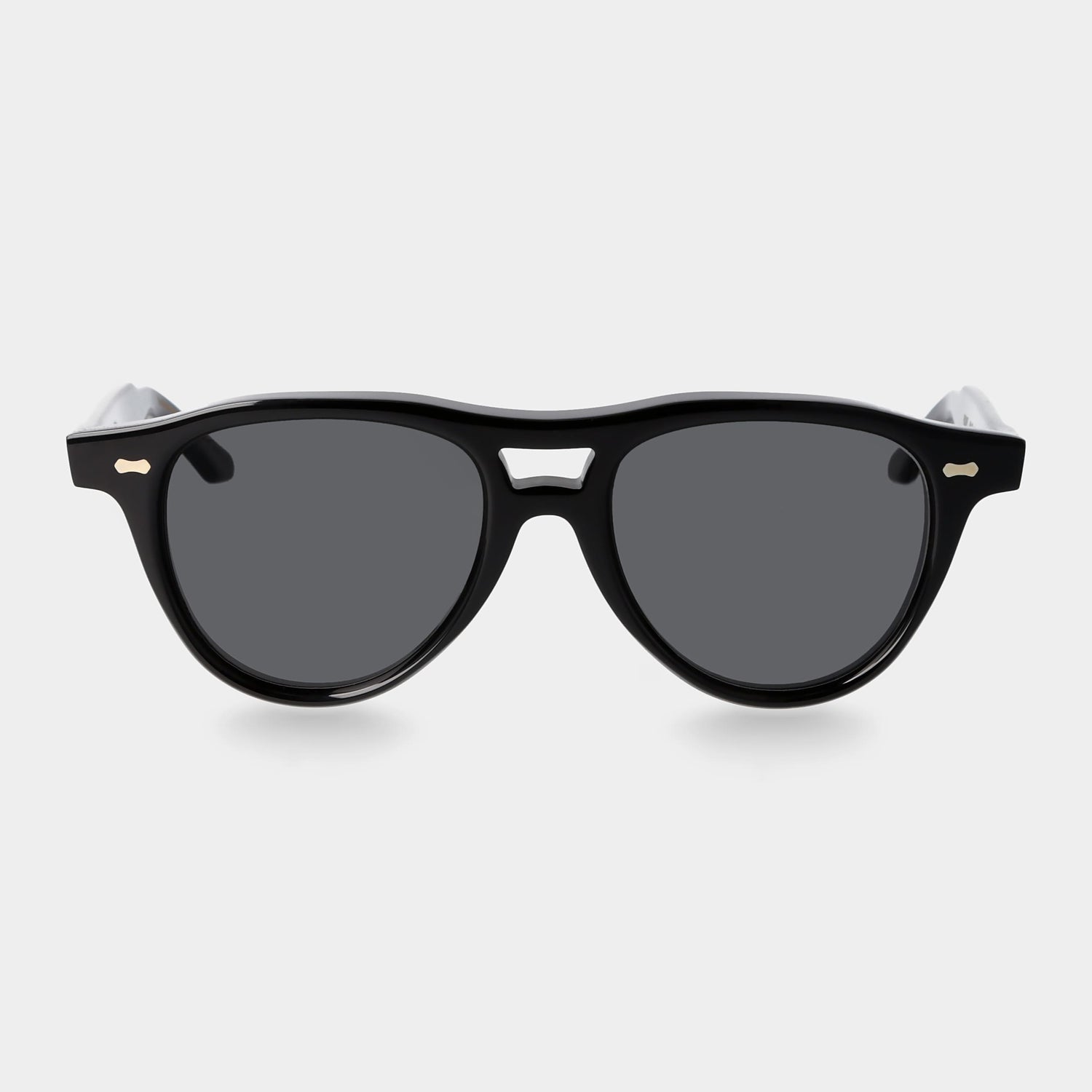 Gli occhiali da sole aviatore neri in bioacetato, lente a goccia e doppio ponte strutturato. Realizzati con materiali naturali, bioacetato per la monatura e lenti grigie bio-based. Modello unisex, l'ideale per chi ricerca un'estetica audace.