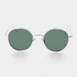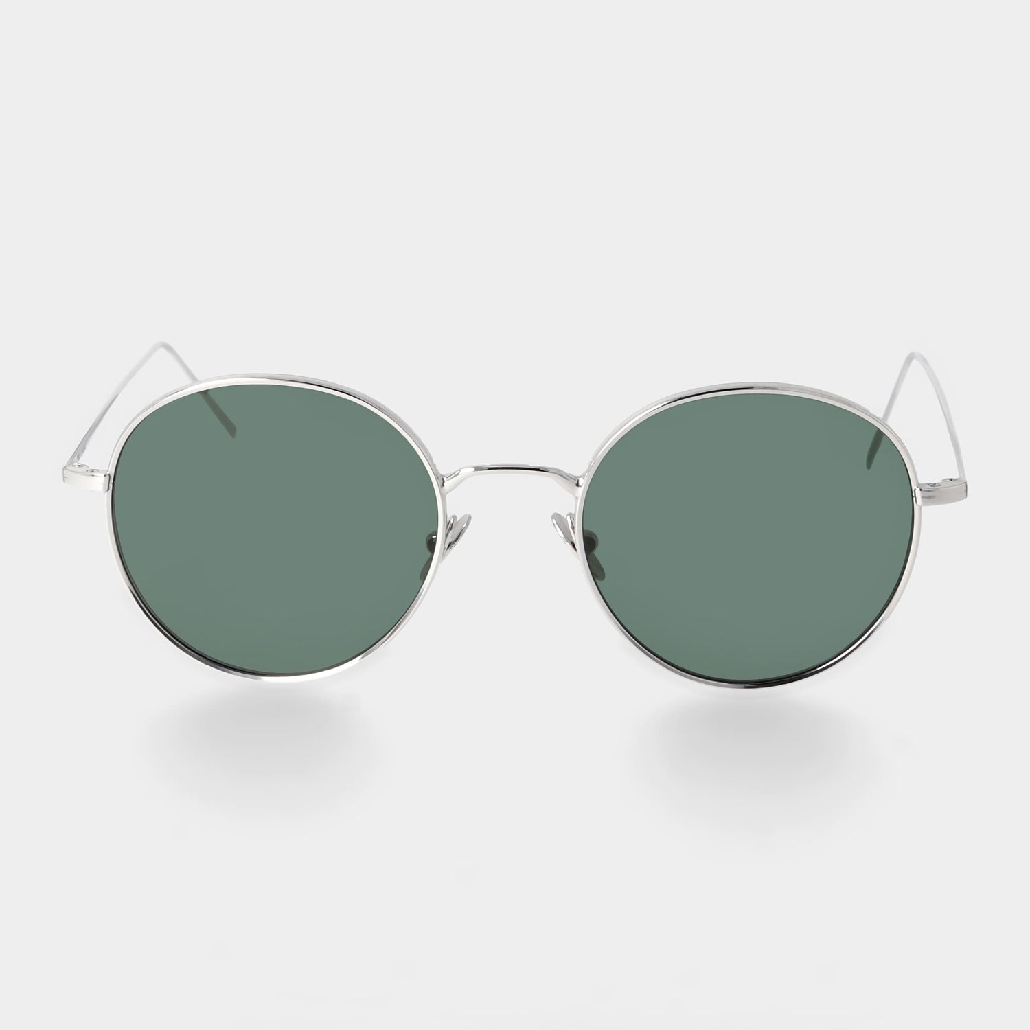 Questi di occhiali da sole rotondi con montatura in metallo, abbinata a lenti verdi, sono leggerissimi e perfetti per ogni occasione. Stile vintage e linee essenziali, realizzati a mano in Italia.
