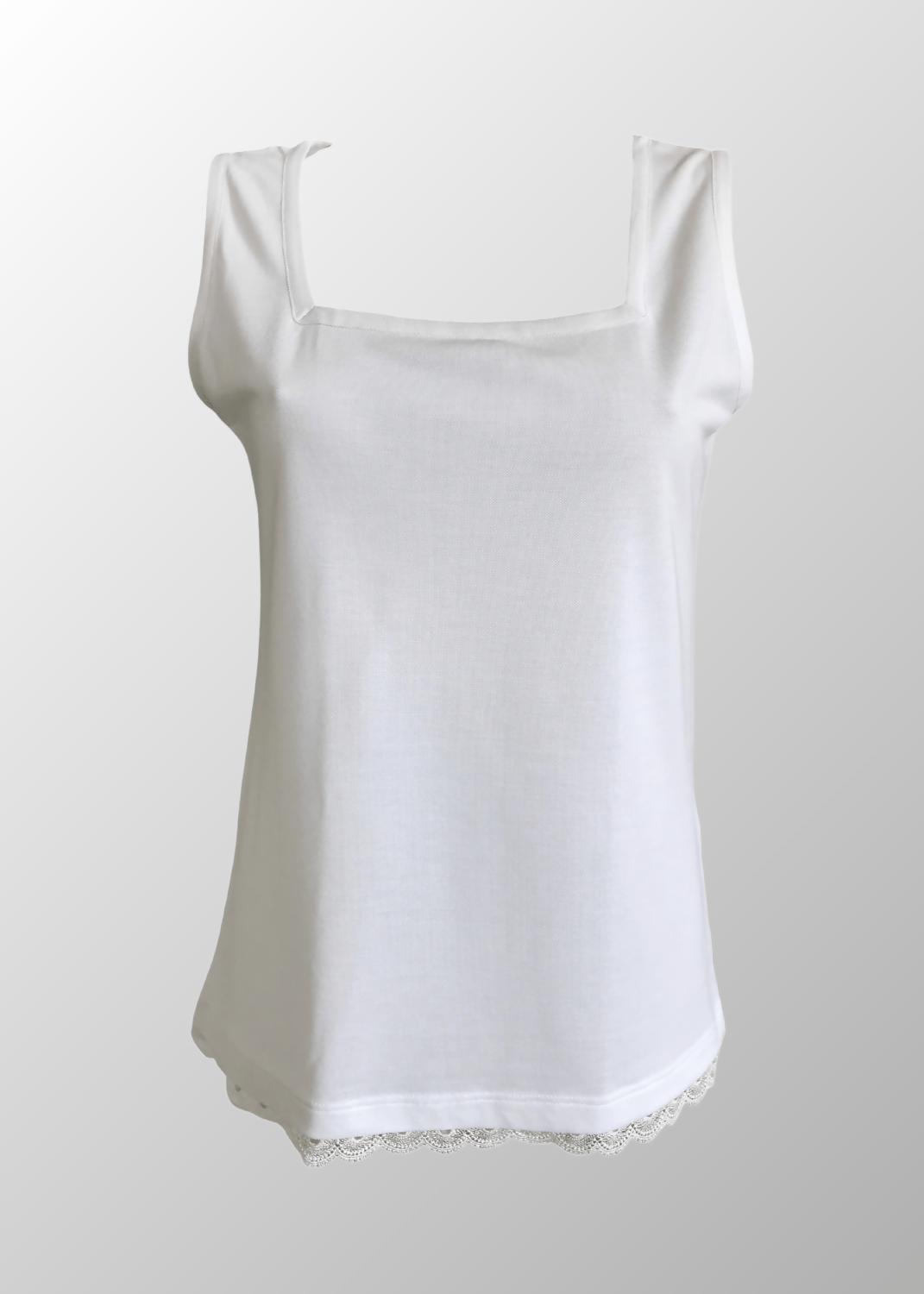 Canotta spalla larga piquet Isabelle in Cotone Seta con pizzo