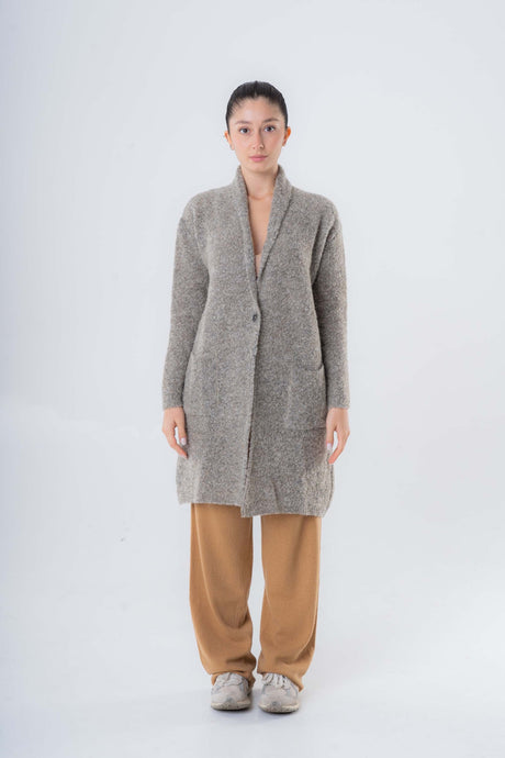 Altramoda has chosen to combine bouclé wool with silk, creating a very soft fabric, delicate on the skin and highly resistant. Silk, with its lightness and breathability, complements the wool, giving the garments an elegant finish and a vaporous texture.