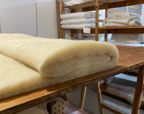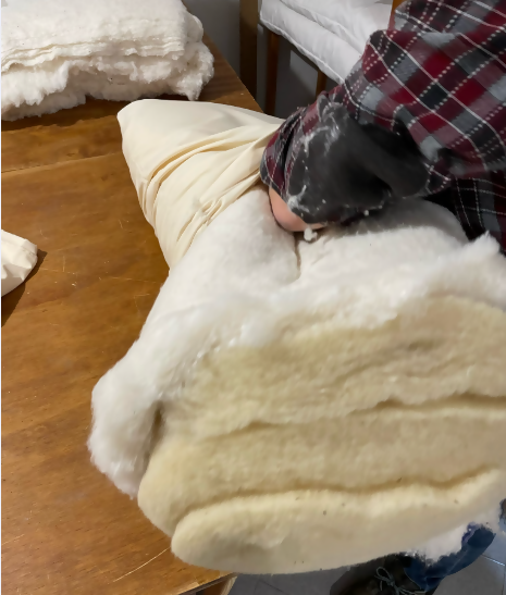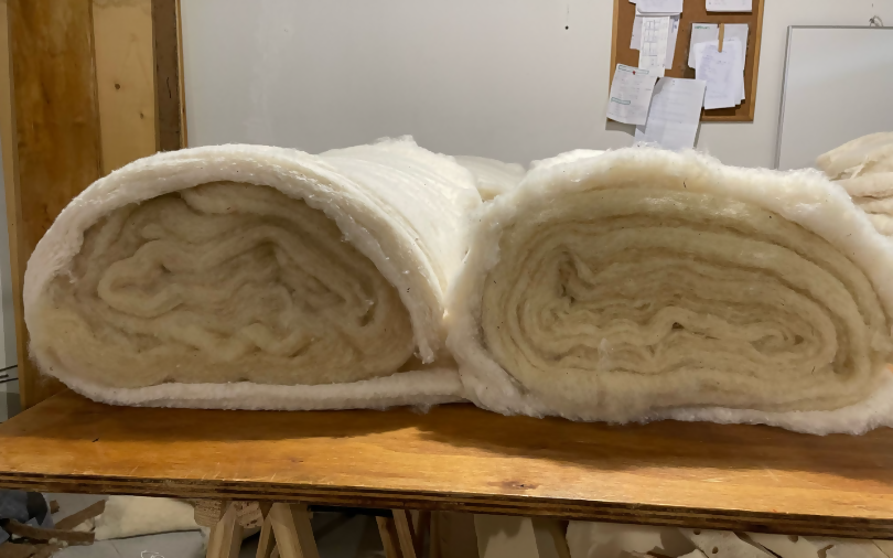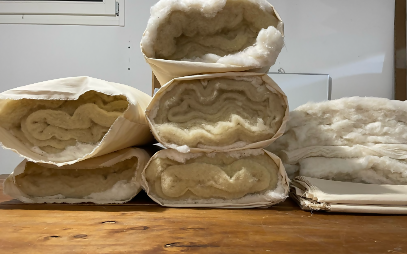 The cushion is assembled by inserting several carded layers so that the outer layer is made of first choice cotton and the inside of wool.