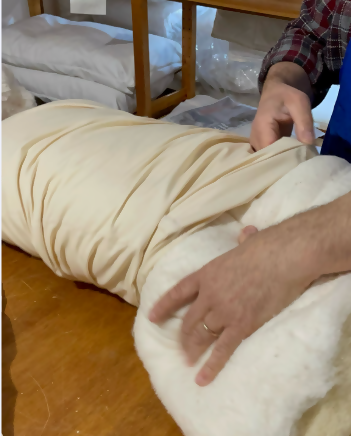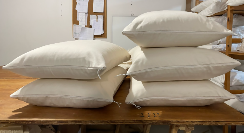 Sleeping pillow, handmade in wool and cotton wadding, for excellent comfort and breathability.
