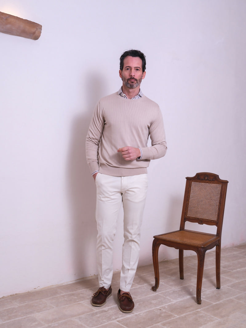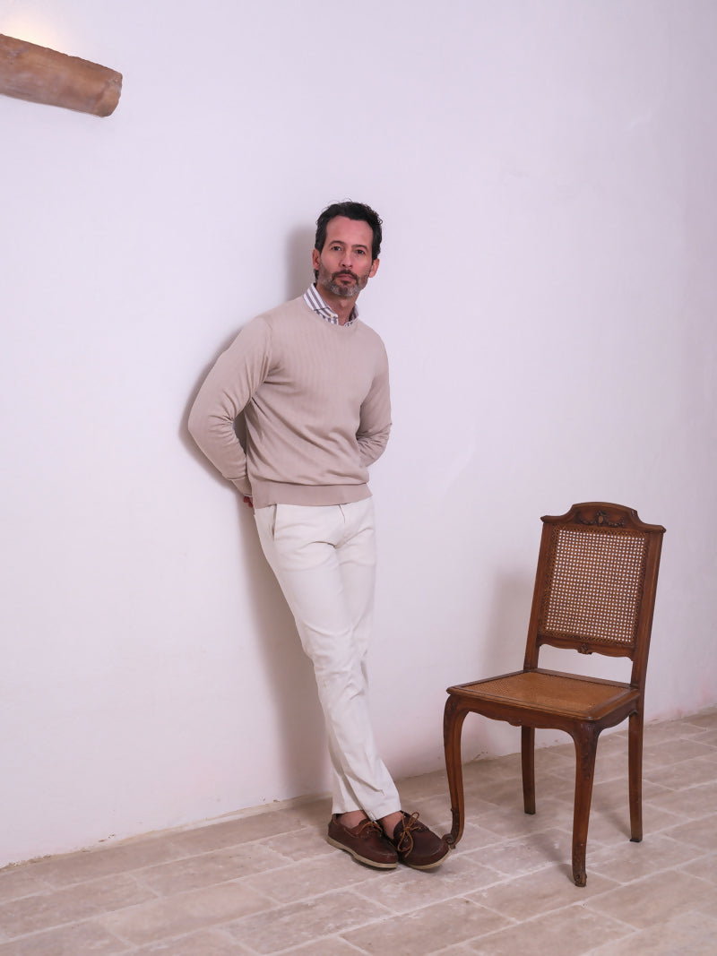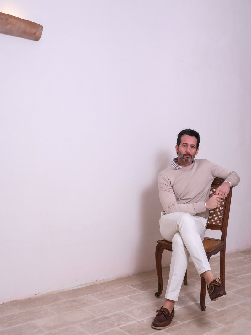 Essenza is "the inherent and immutable reality of things," in this case knitwear. Essenza was born from the idea of having a garment as the foundation of all men's clothing, a must-have. The cut makes it comfortable, and the silk provides a unique sensation against the skin.