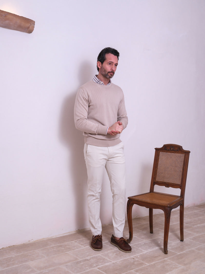 Silk and Cotton Crew Neck Sweater - Sand - S is backordered and will ship as soon as it is back in stock.